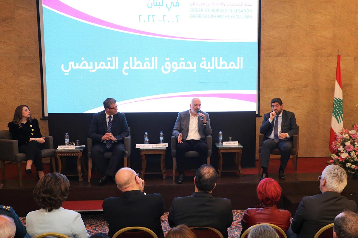 وتضمّن الحفل طاولة مستديرة شارك فيها المهندس نسيب نصر مدير عام شبكة مستشفيات اوتيل ديو دو فرانس والسيد ميشال شاهين المدير التنفيذي لمركز بحنس الطبي والسيد شادي الحنوني مدير عام مستشفى المركزي مزبود والسيدة سينتيا أبي خليل مديرة التمريض في مستشفى اللبناني الجعيتاوي الجامعي وأدار النّقاش الإعلامي بسام أبو زيد حيث طرح على المشاركين أسئلة تمحورت حول المشاكل والحلول ورؤيتهم للحلّ الأفضل ومدى مشاركتهم النّقابة في مقاربة المواضيع المطروحة وقد تبيّن أن المشاركين أجمعوا في مداخلاتهم على ضرورة تعزيز التقديمات المالية والاجتماعية للممرضين من أجل بقائهم في المستشفيات التي يعملون فيها والحد من هجرتهم إلى الخارج في شكل خاص وكان توافق على ضرورة تقاضي رواتبهم أو جزء منها بالدولار، وتأمين ضمان صحي فاعل لهم، إضافة إلى تأمين بدل نقل يتيح لهم الوصول إلى عملهم من دون تكبيدهم أعباء إضافية. وشدد المشاركون على أهمية دور الممرضات والممرضين في القطاع الإستشفائي كركن أساسي في الحفاظ على أهمية هذا القطاع.