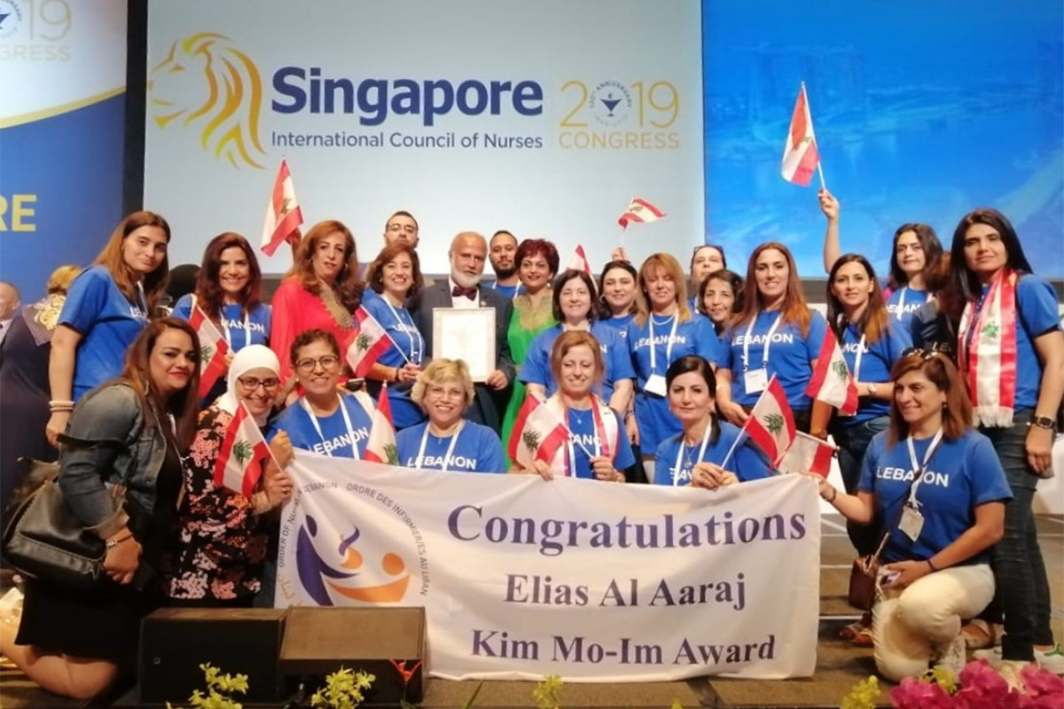 فاز النقيبالمؤسس لـنقابة الممرضاتوالممرضين في لبنان النقيب إلياس الأعرج بجائزة " KIM Mo IM2019" التييمنحها مجلس التمريض الدولي (ICN) عنالإبتكار والتأثير في رسم السياسات الصحية.
