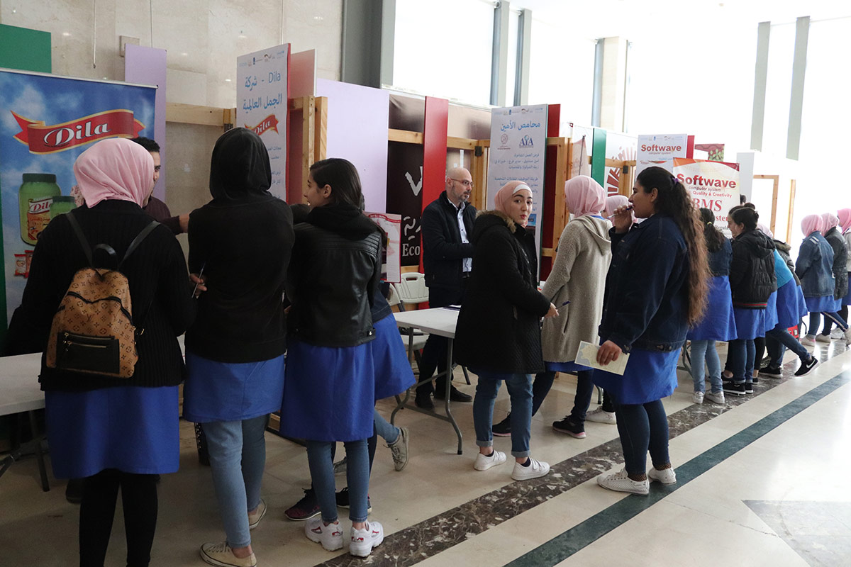 The career day aims at providing youth from the secondary level with career guidance and sharing vacancies opportunities to vocational training graduates and job seekers.