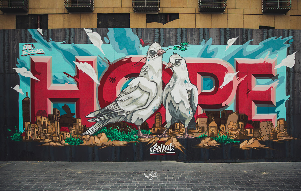 HOPE TAKES SHAPE WITH ART is an initiative born after the Beirut Port explosion when Le Gray, Beirut had all its façade windows and doors broken and has had to cover it with a metallic fence. This fence came out very black, unlike its interior full of colours and life, resplendent with beautiful moments that had to momentarily freeze due to massive damages as a result of the blast. This is where the inspiration to let art give shape to hope originated and then the idea became a reality when three graffiti artists; Alfred Badr @apocaleps, Spaz @spazuno and Exist Ai @exist_ai put their creativity into beautiful forms and colours to send a positive message to the world.